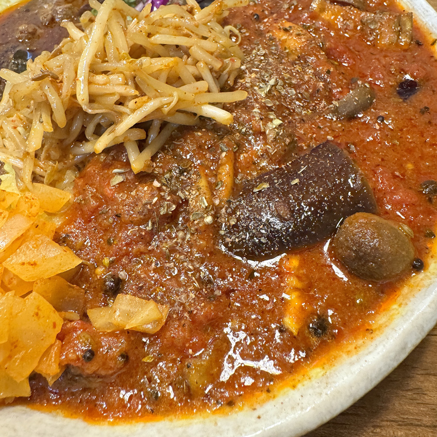 季節感がなくなってきている気もするけど、季節のものをおいしく食べたと常々。今回の限定は、秋茄子+舞茸としめじと聞いてワクワクしてしまった。トマトの甘酸っぱさとスパイスの爽やかさ、口内で弾けるブラックペッパー、ちょっと辛めのチューニングが肌寒くなってきた今日みたいな日にはぴったりのおいしさ。もう片方のラムは風味豊かで、秋茄子とのコントラストも、これぞ魯珈だと唸ってしまった。