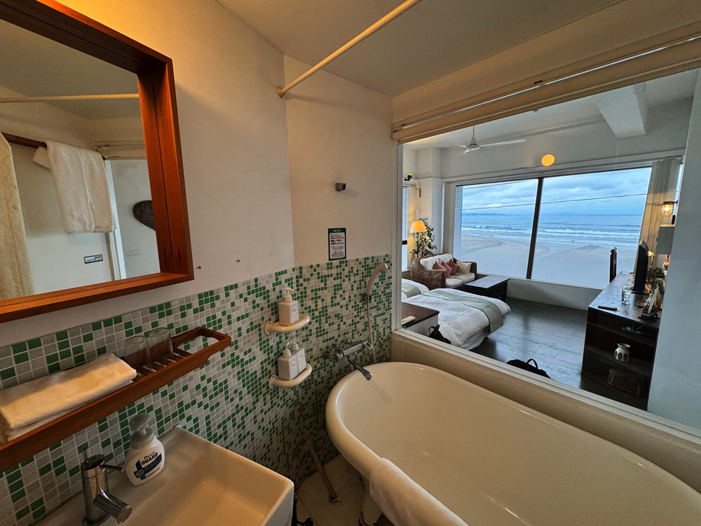 着いた日は曇り〜雨。翌朝は晴天。夕方遅くまで数多くのサーファー、翌朝も早朝から思い思いに波乗りしている姿を見ているのも楽しい。部屋は清潔でちょっとした小物たちを手に取っているだけで心が落ち着いてくる。古びた電話もちゃんと作動するから不思議だ。