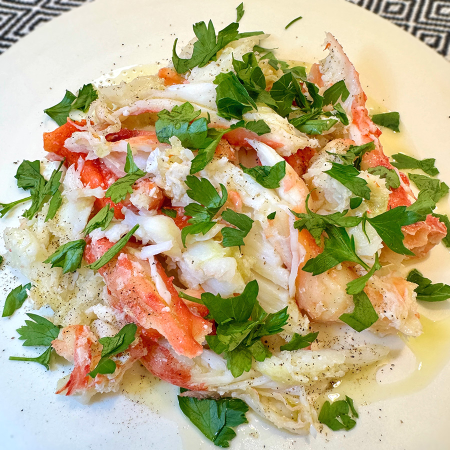 お年取りといえば、仙台ならば子持ちナメタガレイの煮付けで子孫繁栄を祝ったものだ。幼い頃はどうもこれが苦手で、本当のおいしさが分かったのが大人になってから。最近はすき焼きが多かったけど、今年はカニサラダ。何ヶ所回って良さそうなのを選び、丁寧に解凍〜二人がかりで身をむく。上質なオリーブオイルと黒胡椒少々だけの味付け。もう随分前に麻布のイタリアンレストランで覚えた食べ方だけど、カニはこれが一番おいしいと思う。