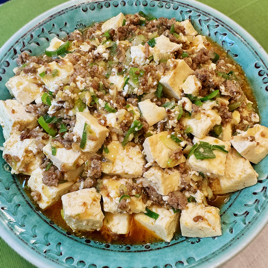 豚ひき肉はコールドスタートというのが新鮮で、しかも生姜とネギをたっぷり。味付けは和風ものばかり。動画やレシピでは木綿豆腐に水切りは不要とあったが、水っぽくなってしまったので30分ぐらい水切りしたほうがちょうどいい。辛味は柚子胡椒というのがさっぱりとしておいしい。しばらくはこのレシピが我が家の定番になりそう。