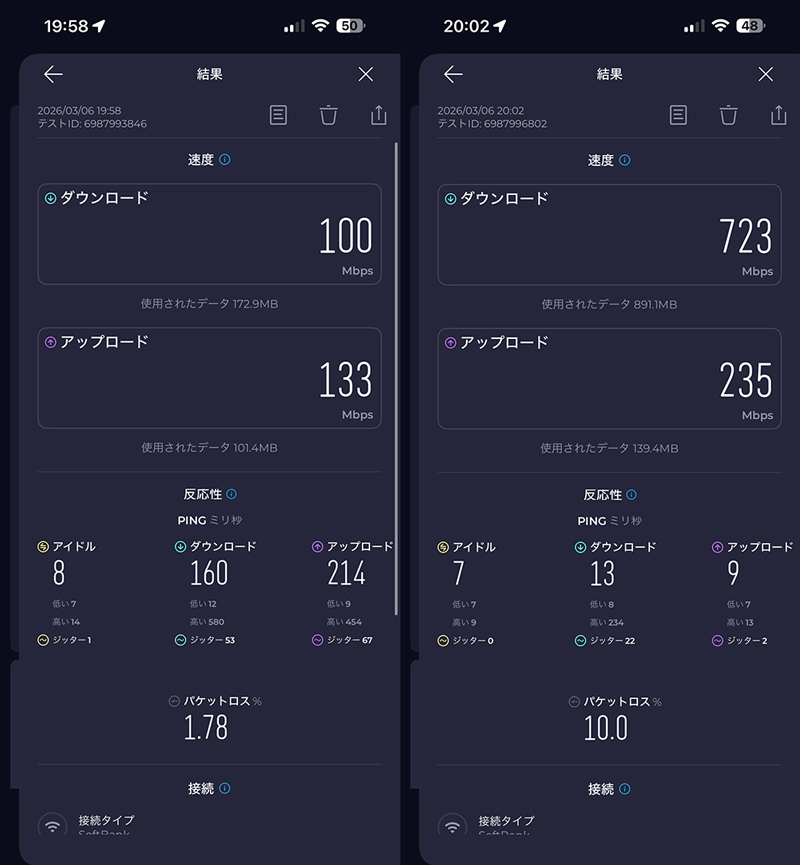 手続きはチャットというのも今風。不得手な人にはしんどいだろうなぁと考えながら、あっけなく手続き完了したのが3/2。新しいBBユニットが到着したのが3/6。説明書通りに配線して、回線切替のために10分程度は放置が必要なため、その間お風呂へ。iPhone、iPadはQR経由で楽々接続。MacはPWD入力であっけなく接続完了。