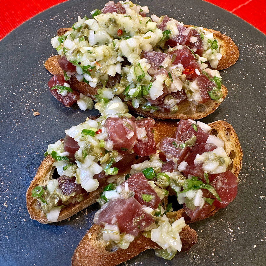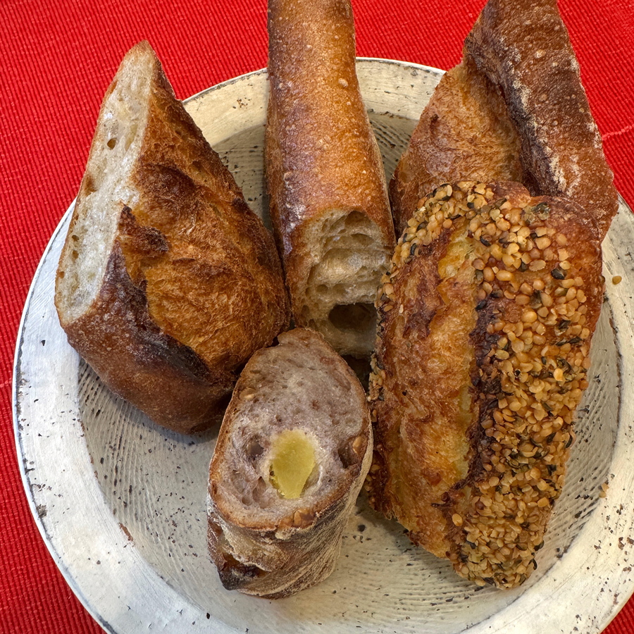 そう、リクエストがあり、再びの再びで神楽坂へ。バケットにエシレなんて何年ぶりだろうか。いつもの発酵バターよりも塩加減が強く、バケットに合わせると香ばしさがまして、ホントおいしい。残りは、薄く切ってこんがりと焼いたバケットにマグロのタルタルをのせたブルスケッタ。他のパンは、魚介サラダ、ラムレーズンチーズ、サラミを挟んできりりと冷やした自ワインで。インスタで教えてもらった新タマネギのスープもパンと同じくらいおいしかった。