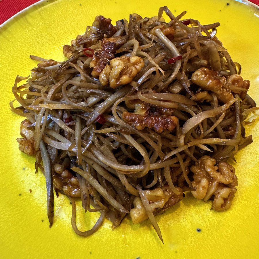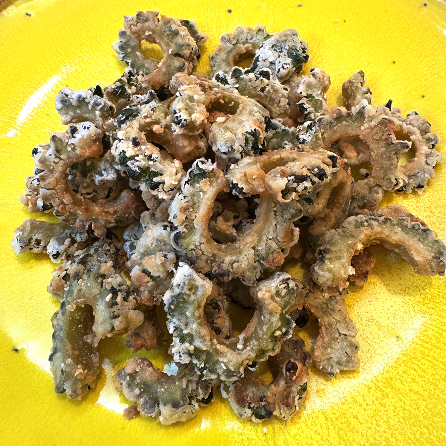 他には、セロリ、アスパラ、ニラの煮びたし、きんぴらごぼう、ゴーヤのから揚げ、辛くない麻婆茄子で日本酒がおいしい。