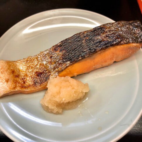 魚竹ホクホクの銀鮭照焼箸で大きく取り分けて御飯の上にのせ、大根おろしもちょんとのせ、一口で頬張る。う〜ん、おいしいなぁ、幸せだなぁ。思わずため息が出てしまう。おかわりしたご飯には漬なかおちをのせてハフハフ。つんとした刻み山葵...